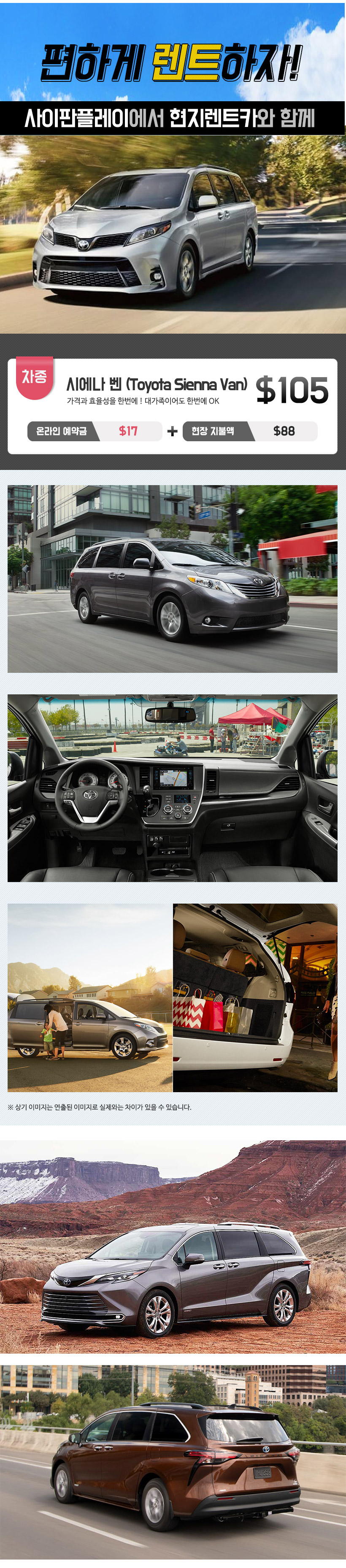 - 모든 차량은 자동 변속기이며 유종은 휘발유입니다.