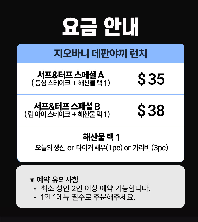 고품격 지오바니스의 데판야끼를 즐겨보세요!