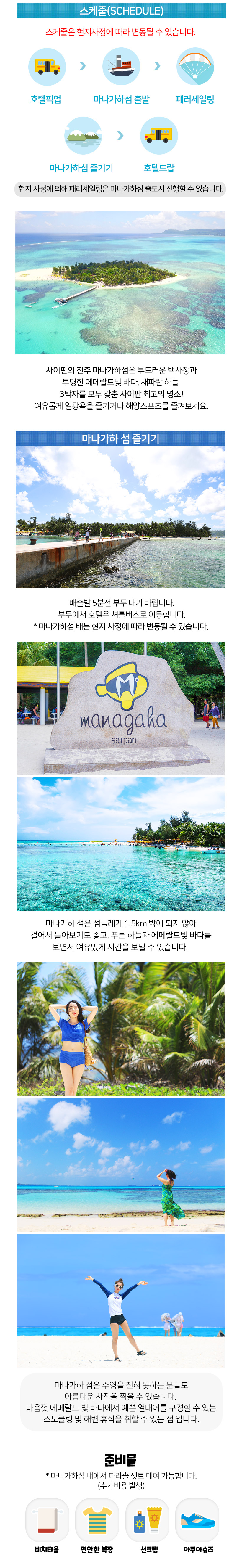 상품 : 마나가하섬+패러세일링 (09:50)