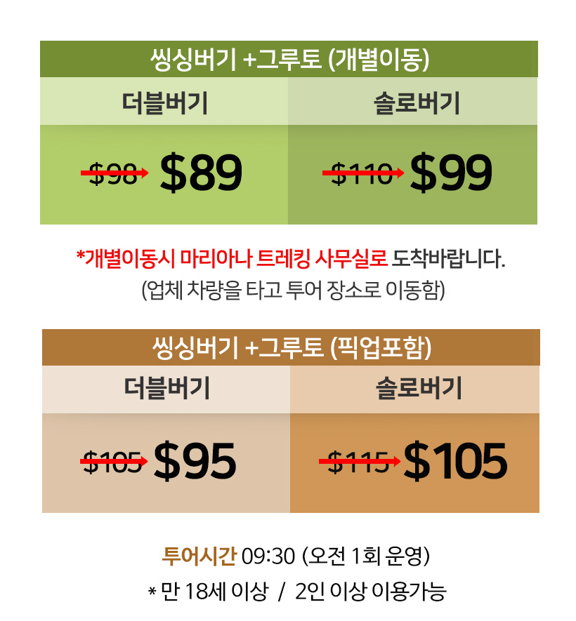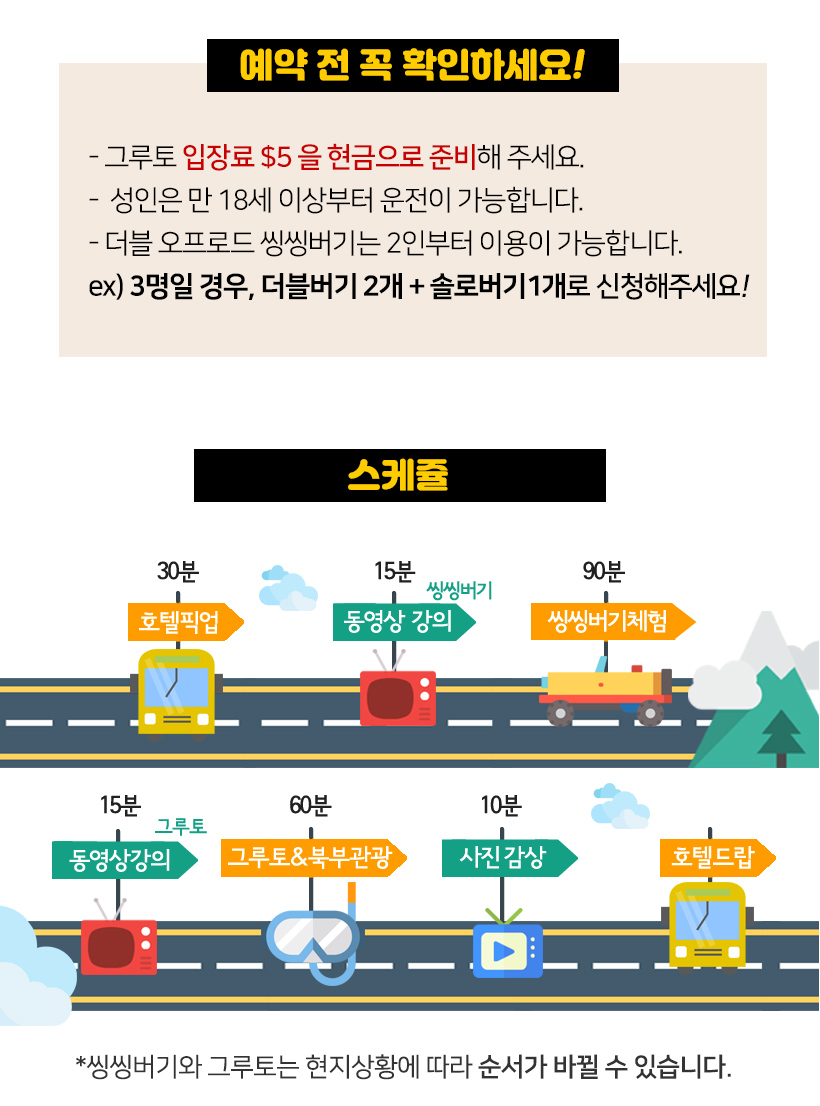 *버기카는 더블버기(2인승)으로 진행합니다.