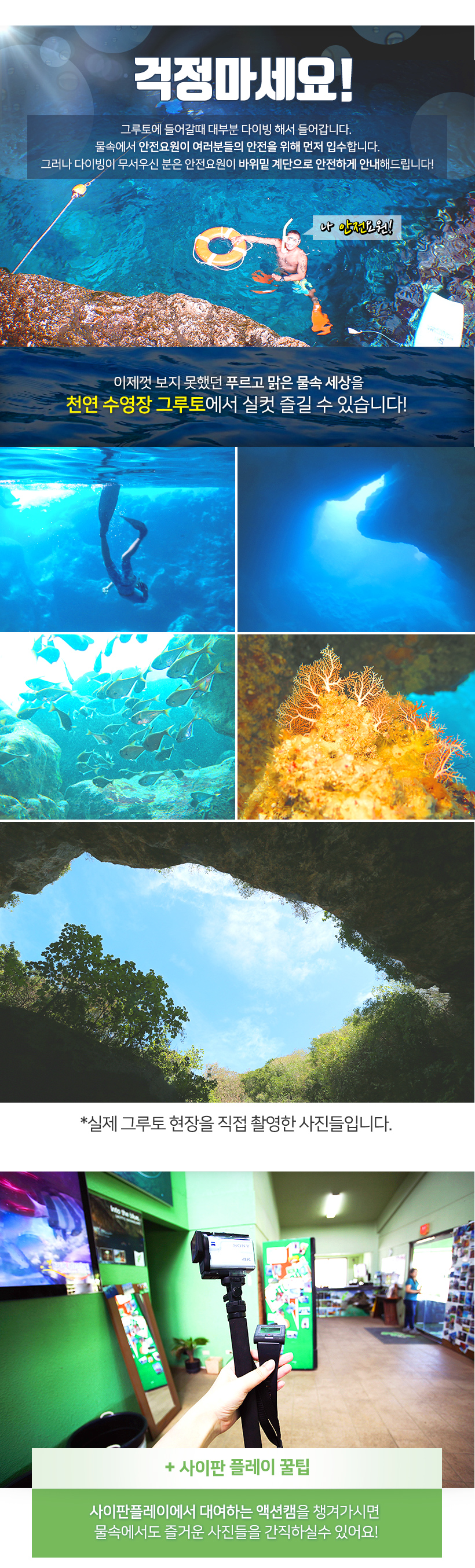 - 그로토 스노클링은 전문가이드의 동행없이는 위험하므로 개별 이용을 삼가해 주시기 바랍니다.