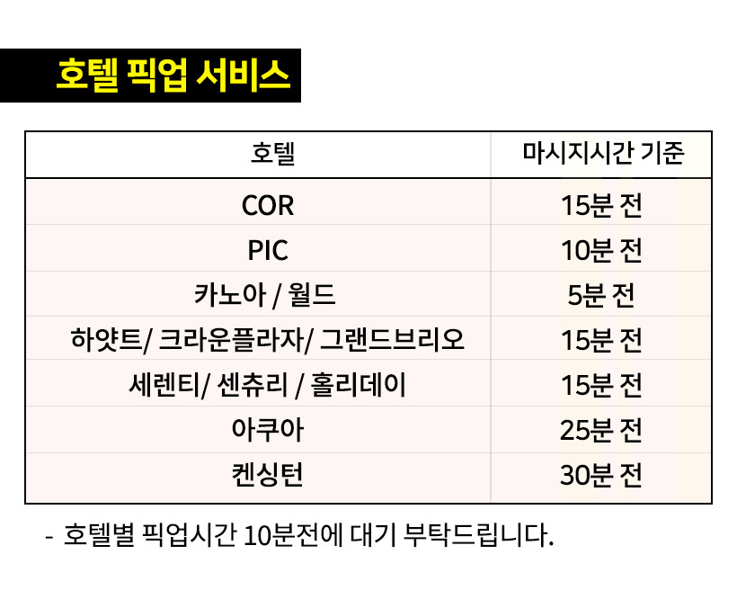- 변경은 이용일기준 3일전까지 1회만 가능하며, 현지사정에 따라 변경이 불가할 수 있습니다.