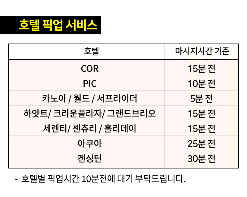 - 일부 호텔 픽업/드랍 서비스
