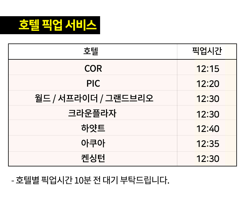 - 변경은 이용일기준 3일전까지 1회만 가능하며, 현지사정에 따라 변경이 불가할 수 있습니다.
