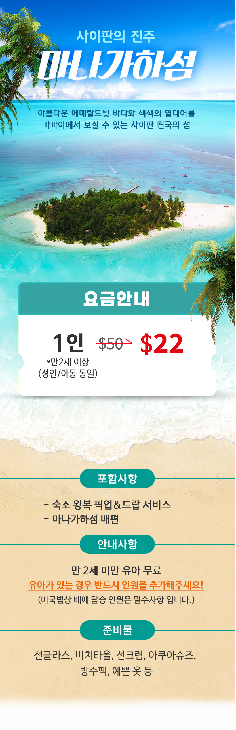 사이판에 가는 이유는 마나가하섬을 가기 위해서이죠~ 재미있게 놀다오셨다니 기분이 좋습니다.
