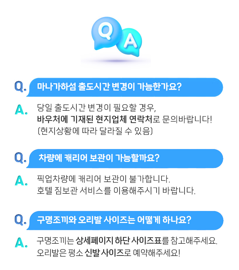 - 변경은 이용일기준 3일전까지 1회만 가능하며, 현지사정에 따라 변경이 불가할 수 있습니다.