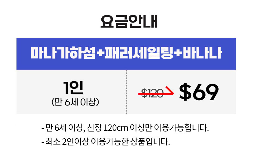 <마나가하섬 장비대여 및 도시락주문 안내>