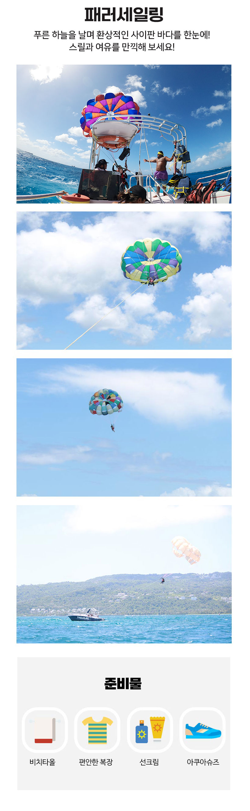 비치타올, 물놀이용품, 선크림, 멀미 약, 카메라 등 개인물품