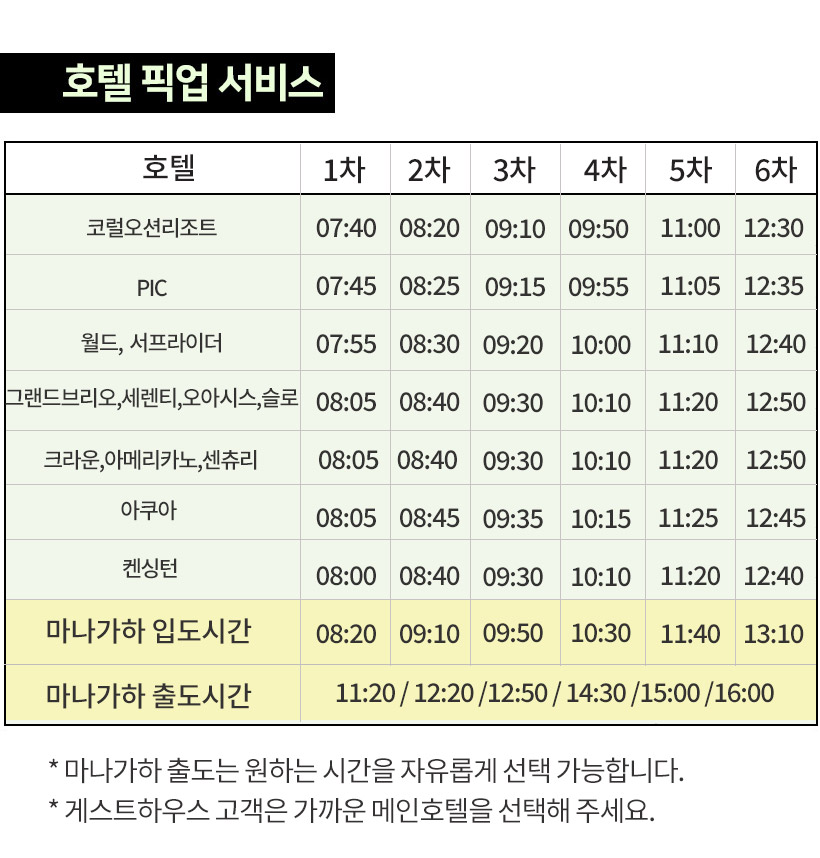 - 호텔 픽업 드롭 서비스