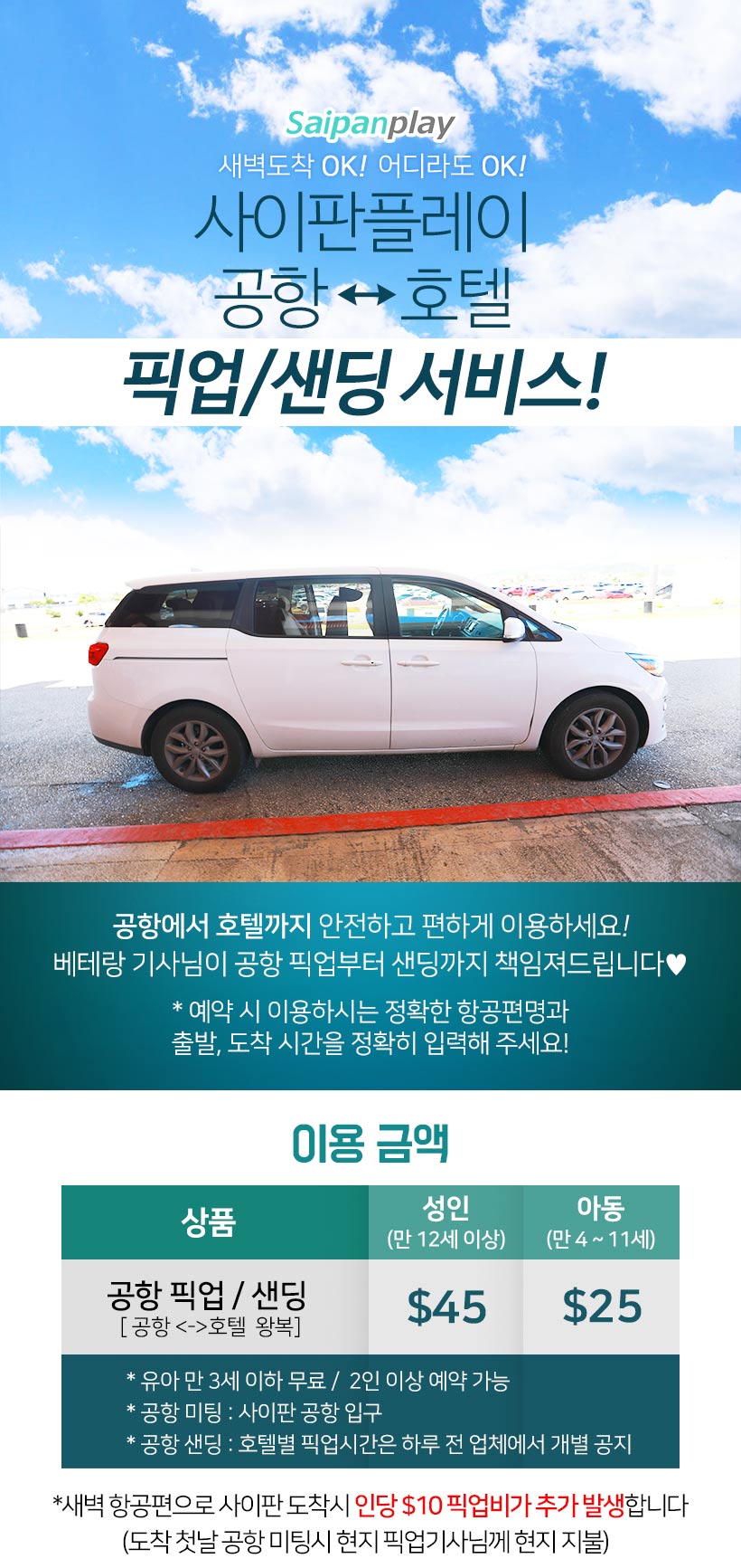 공항 ->호텔 편도 (미팅장소: 사이판 공항 입구)
