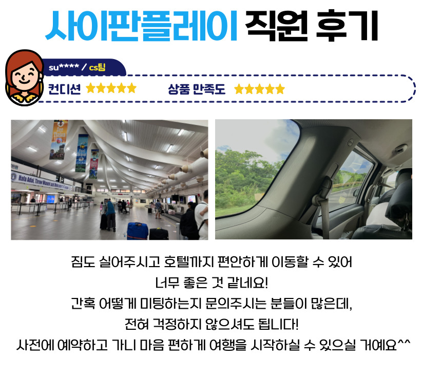 - 공항 <-> 호텔간 픽업서비스 (왕복)