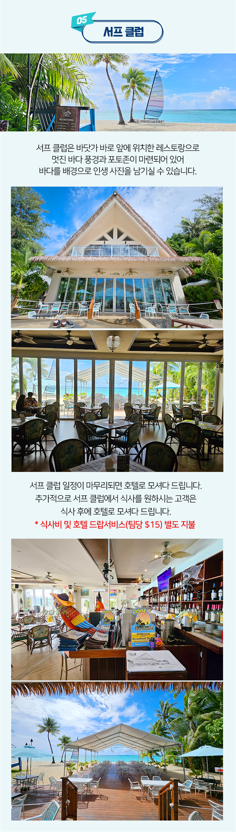 - 서프클럽 식사비용 및 호텔 드랍비 $15 현장지불
