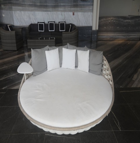 호텔 앞쪽 전용 비치에도 선베드가 마련되어 있어