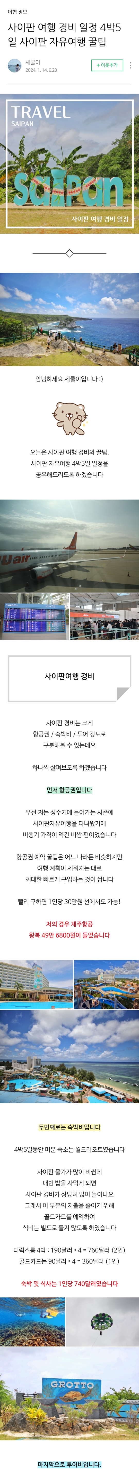 사이판 여행 경비 일정 4박5일 사이판 자유여행 꿀팁