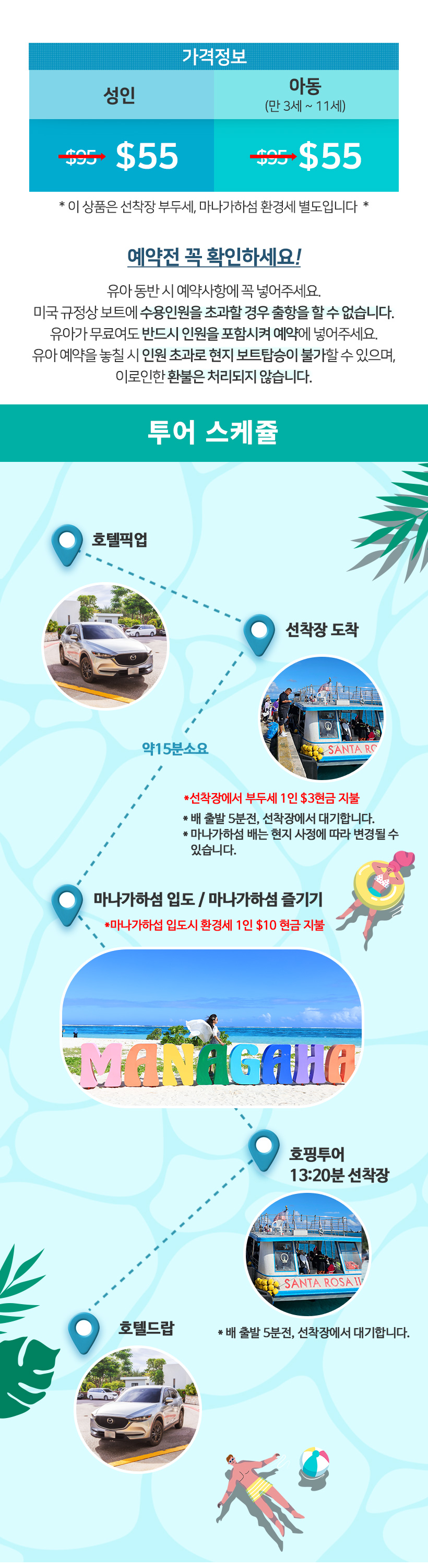 - 마나가하섬 환경세 (인당 $10)