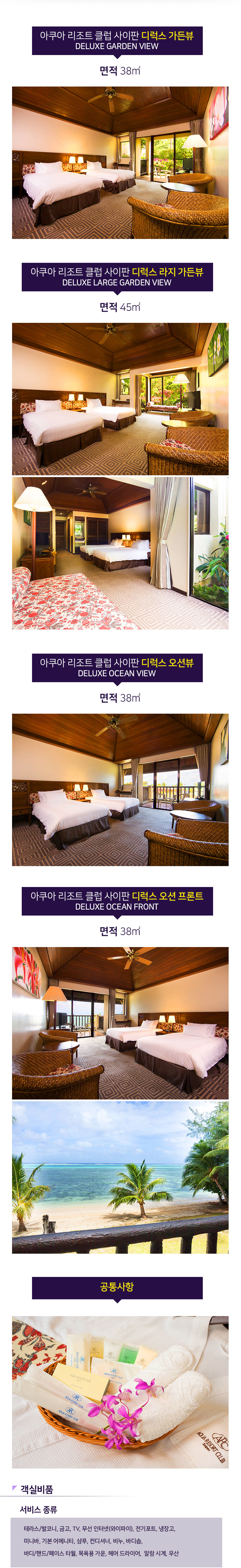 | 객실 타입 | 가든뷰 (G/V), 오션뷰 (O/V), 디럭스 오션 프론트 (O/F) |