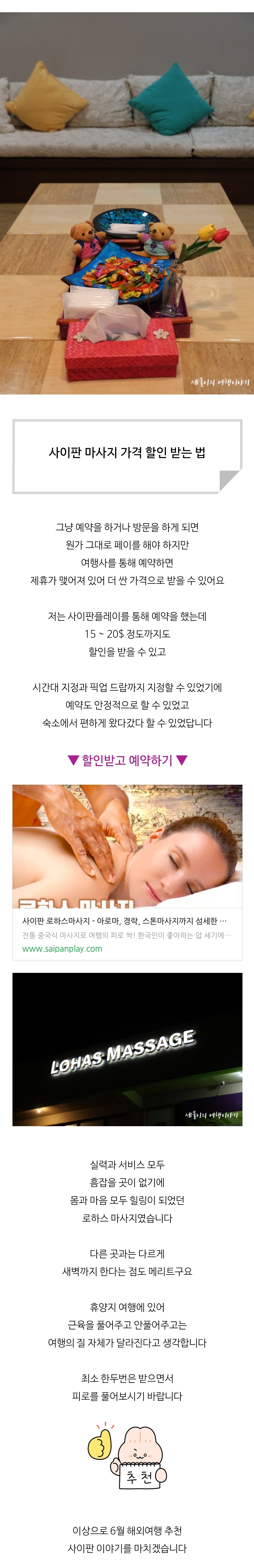 가성비 좋고 편안한 사이판 로하스 마사지!