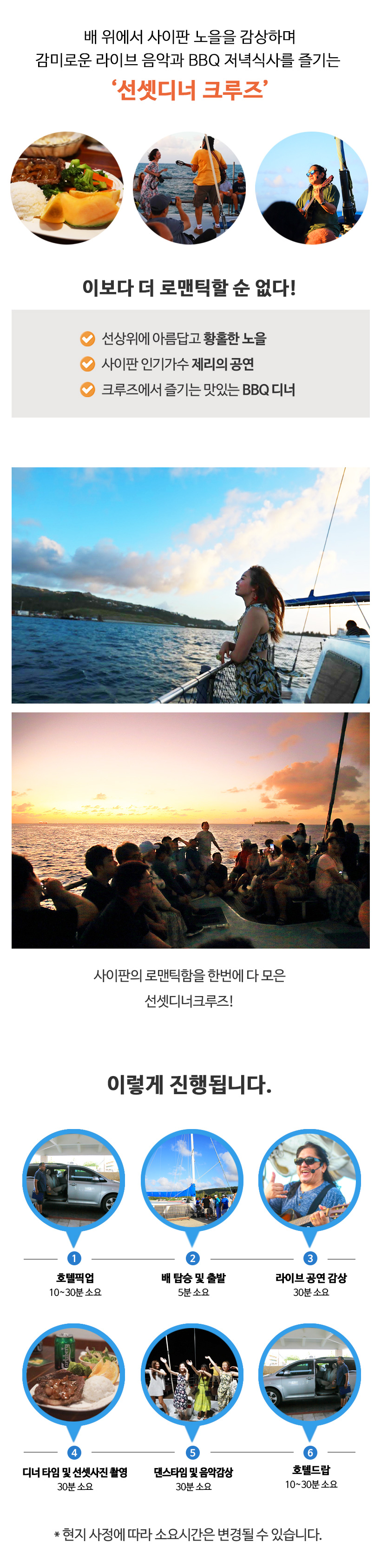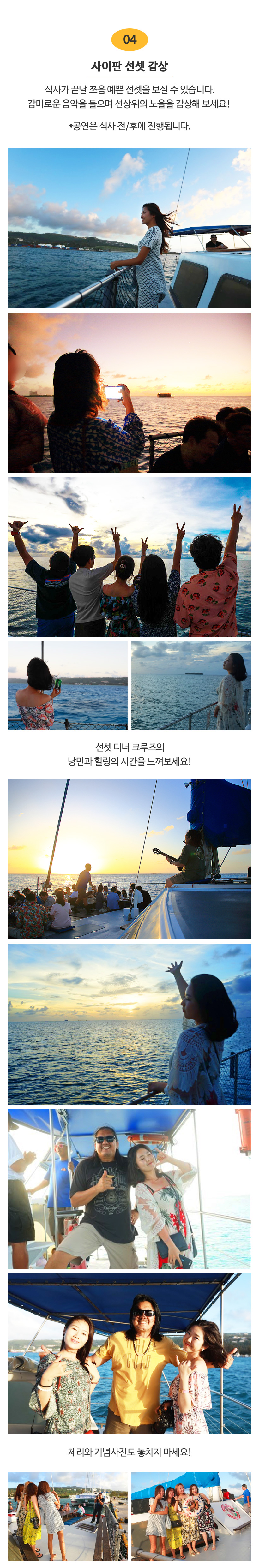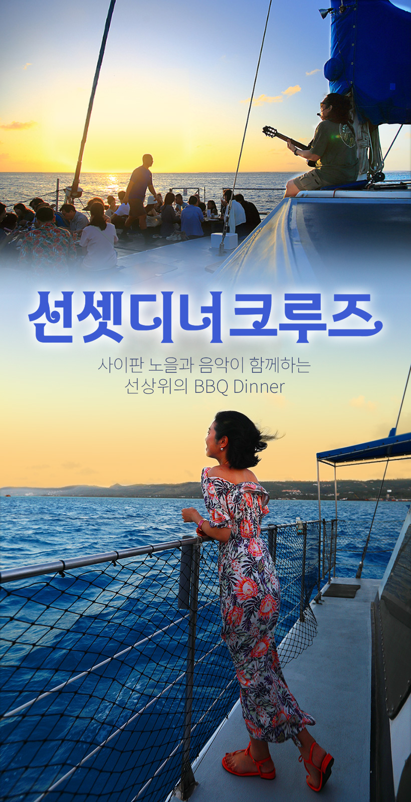 제리의 멋진 공연과 아름다운 사이판의 노을을 배위에서 식사와 함께 감상해보세요