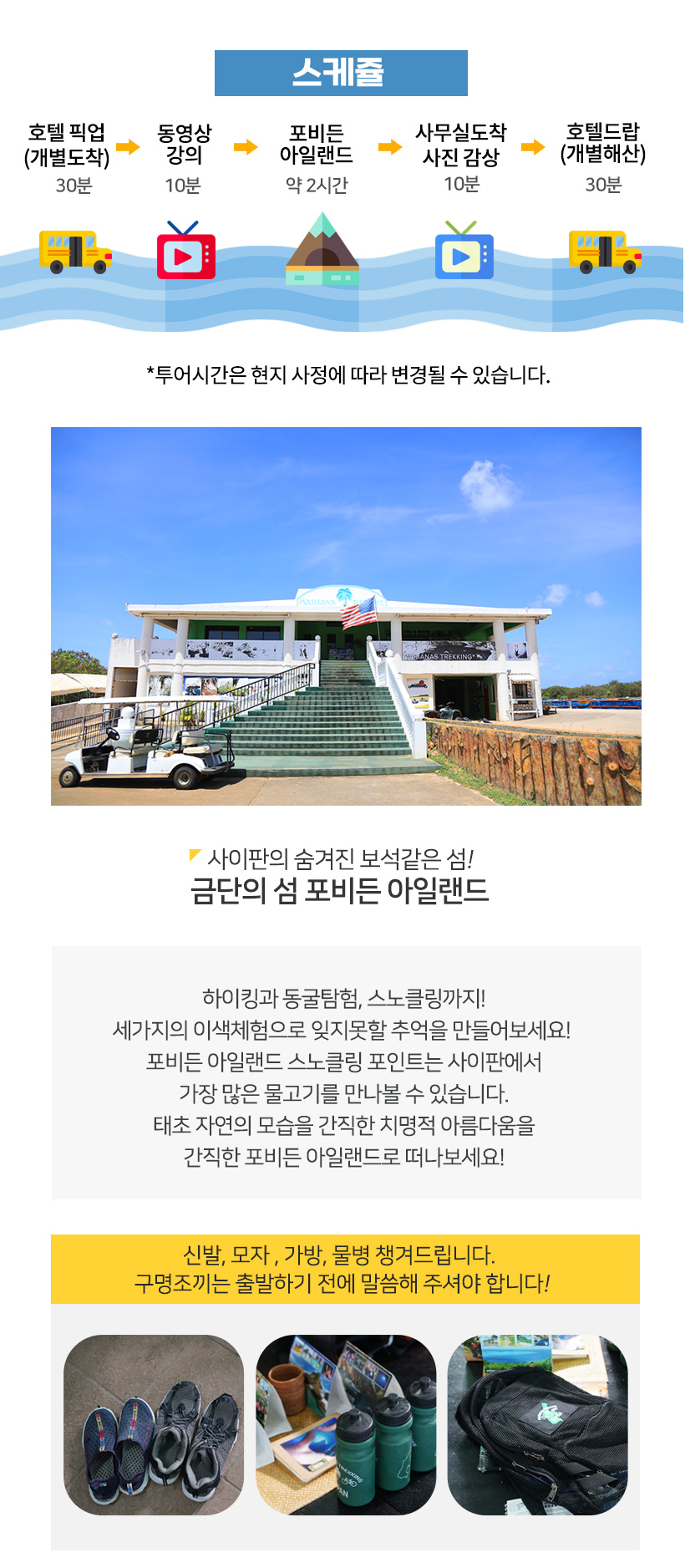 포비든은 하이킹과 동굴탐험,스노클링까지 모두 즐길 수 있는 특색있는 상품입니다.
