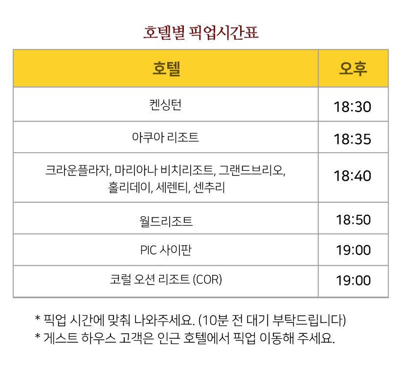 - 호텔 픽업 드롭 서비스