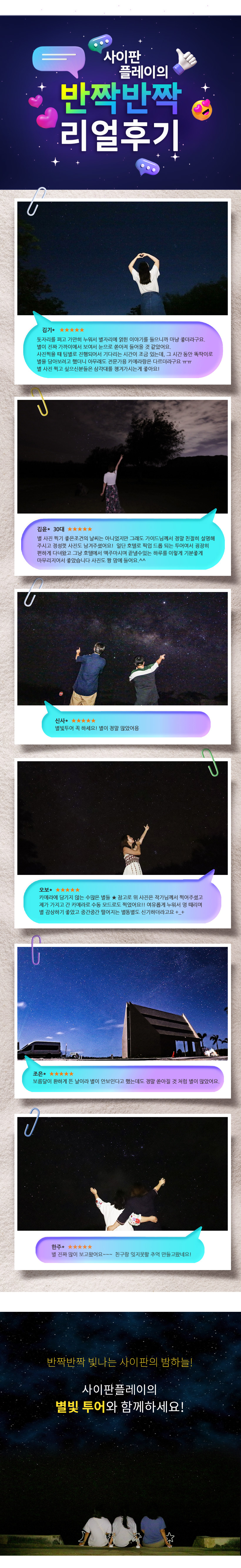 별자리도 다 설명해주시고 사진도 열심히 이쁘게 찍어주셔서 잊지못할 추억 만들고 가는 것 같아 너무 좋았습니다 ;)