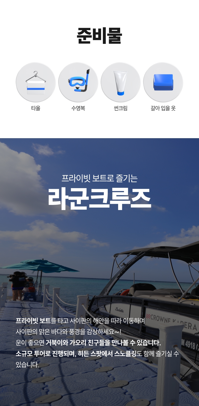 - 스노클링 장비 무료 대여