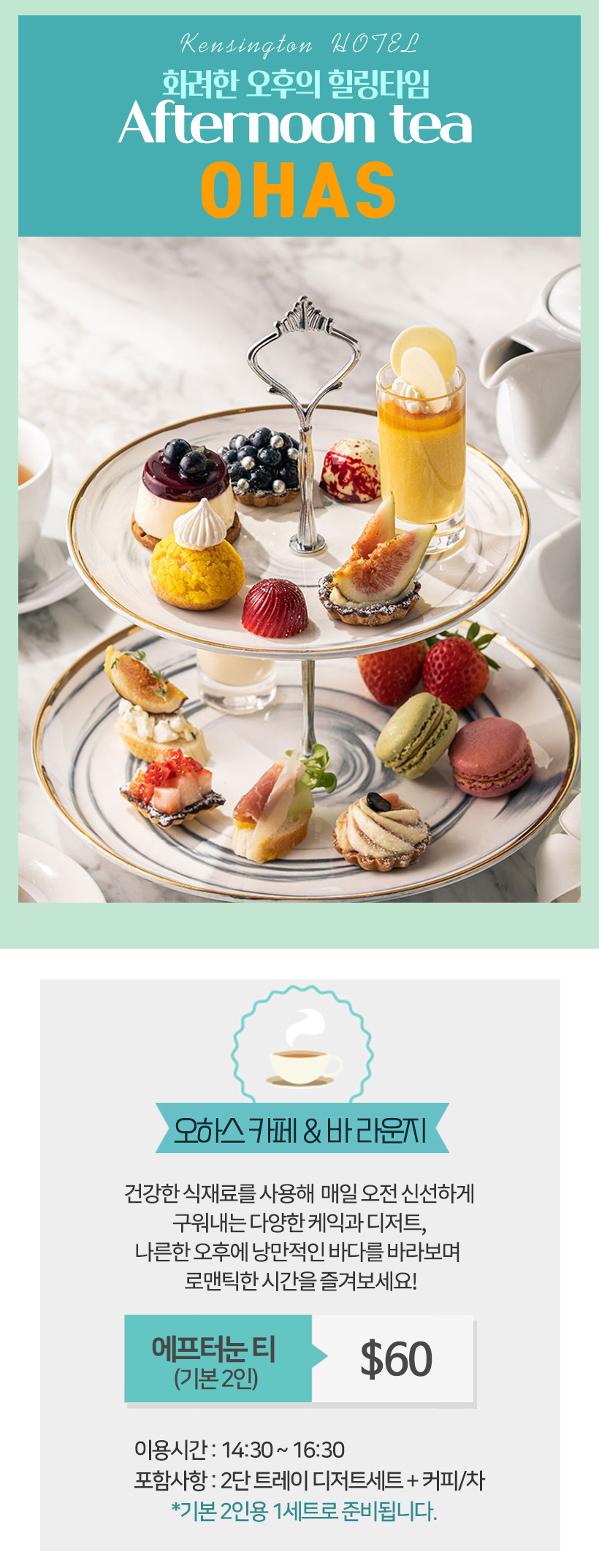 - 2단 트레이 디저트 세트 +커피 /차 (기본 2인)