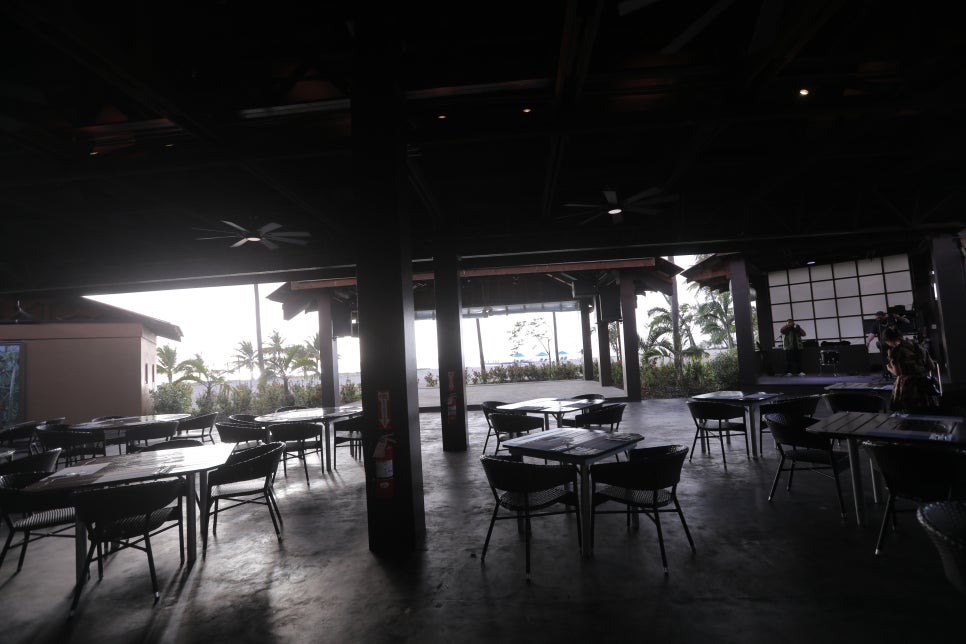넓은 야외 공간이 드러나고, 시원하게 펼쳐진 바다 풍경이 정말 아름다운 장소입니다.