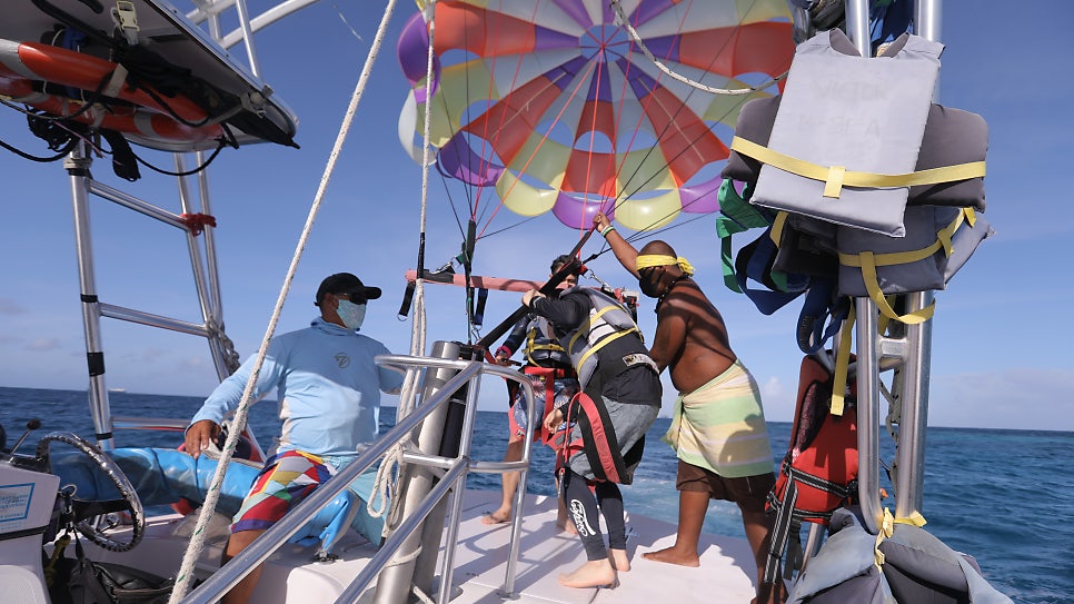 마나가하섬에 도착하기 전에 보트 위에서 패러세일링을 만끽할 수 있습니다.