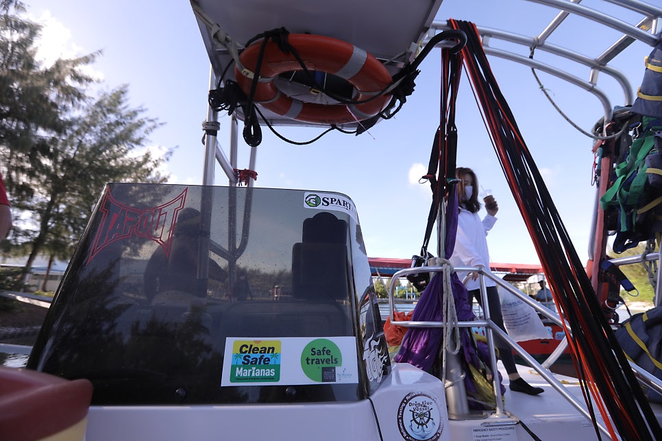 사이판에서의 패러세일링은 앞과 뒤로 앉는 방식으로 이루어집니다.