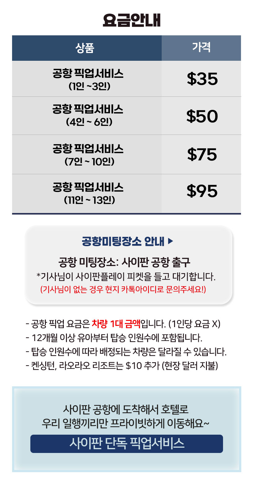 공항 ->호텔 편도 (미팅장소: 사이판 공항 입구)
