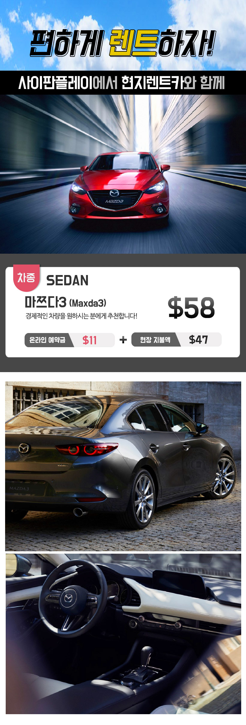 - 만 21세 미만의 운전자는 차량 렌트가 불가합니다.
