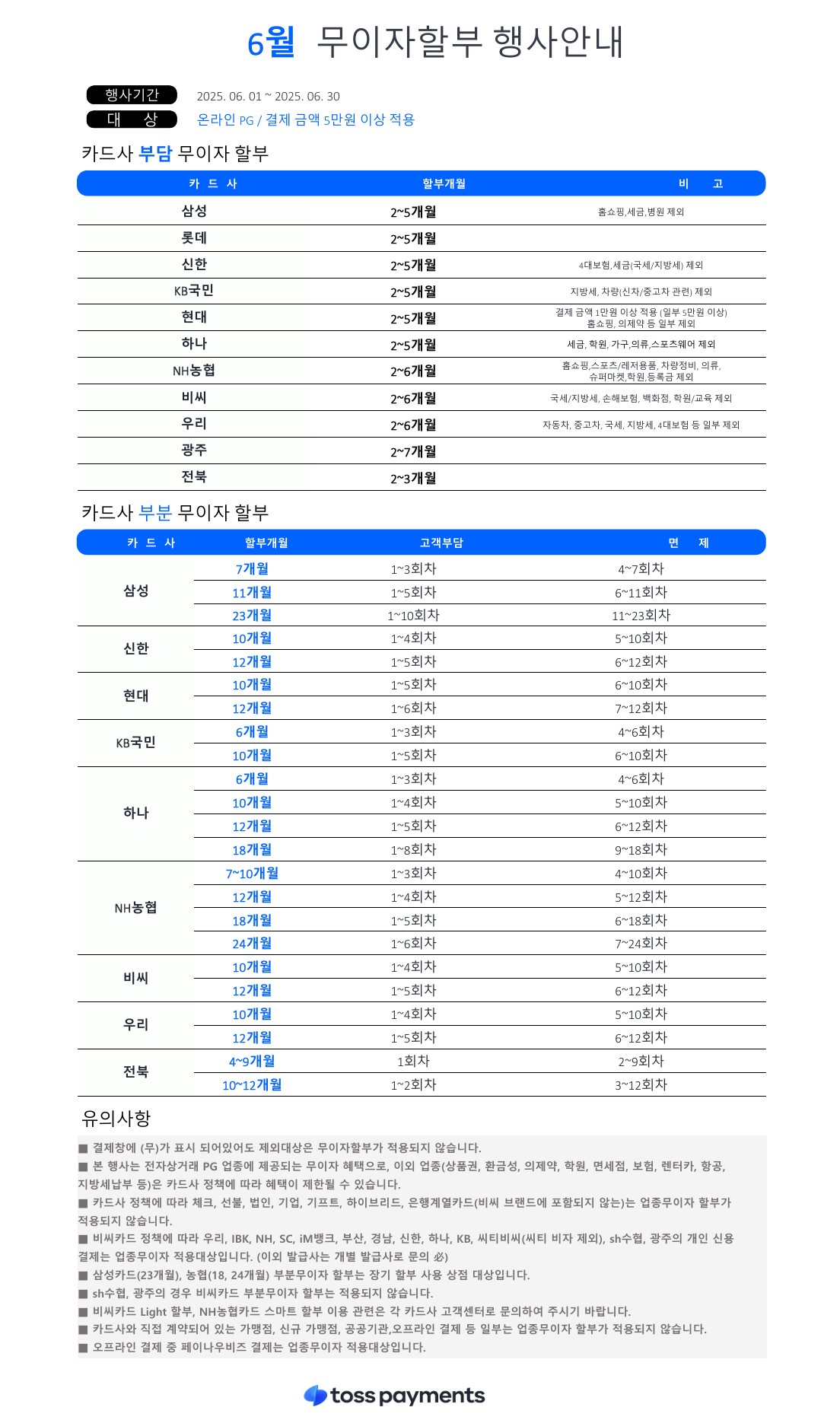 6월 카드 무이자 행사 안내