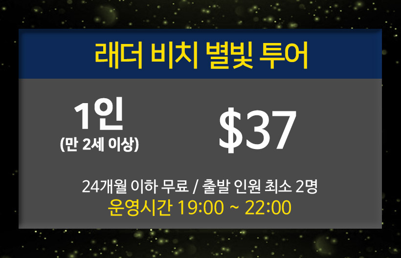 별빛 투어 하기 전 남부투어때 낮에 레더비치를 방문했었어요. 밤에 보니 또 다른 느낌이었고, 파도소리 들으며 쏟아질듯한 별들을 본다는게 너무 특별했어요.